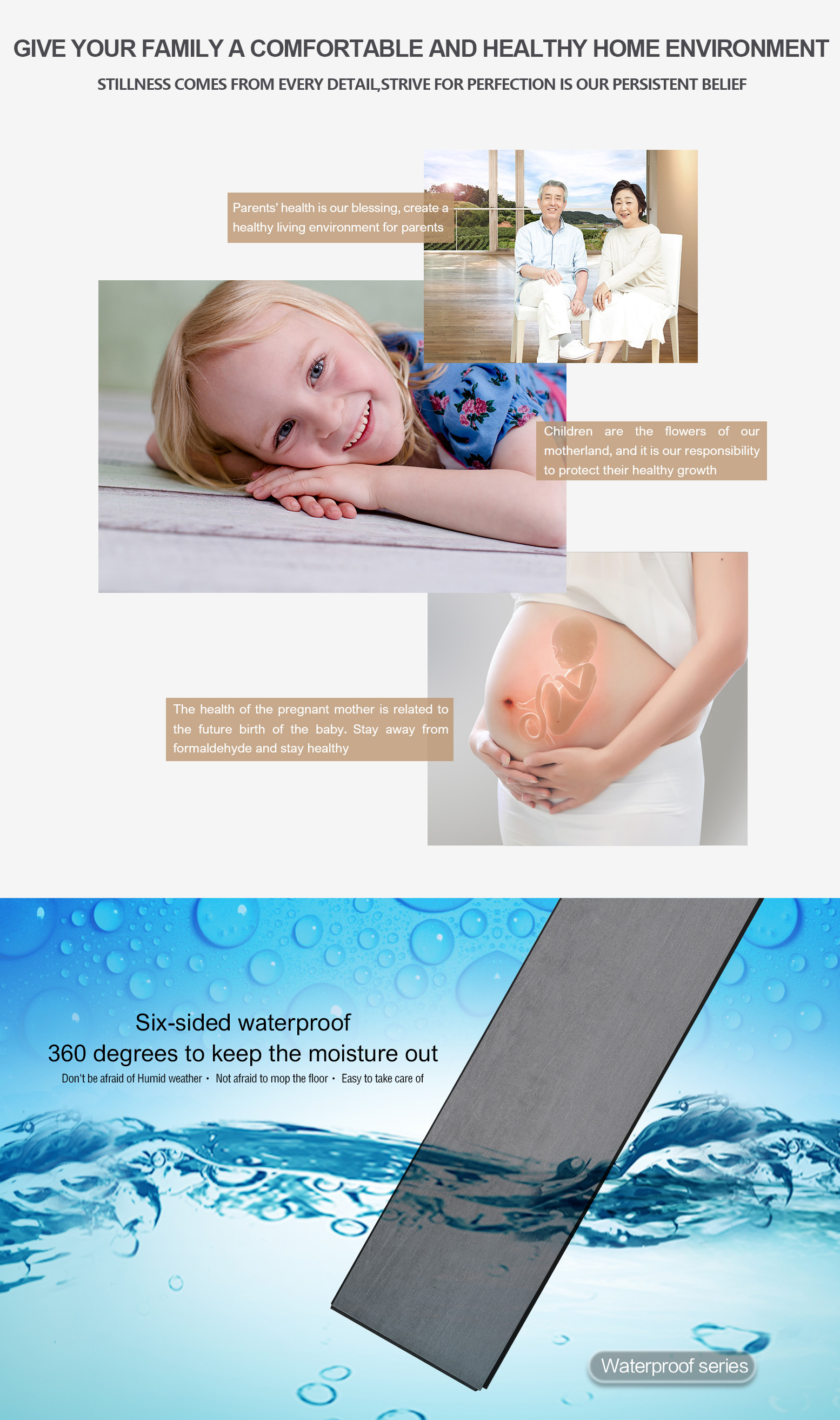 product superiority:The waterproof laminate floor is processed by high-tech means, and its waterproof performance is much higher than that of traditional floors, which can extend the life to 20 years.